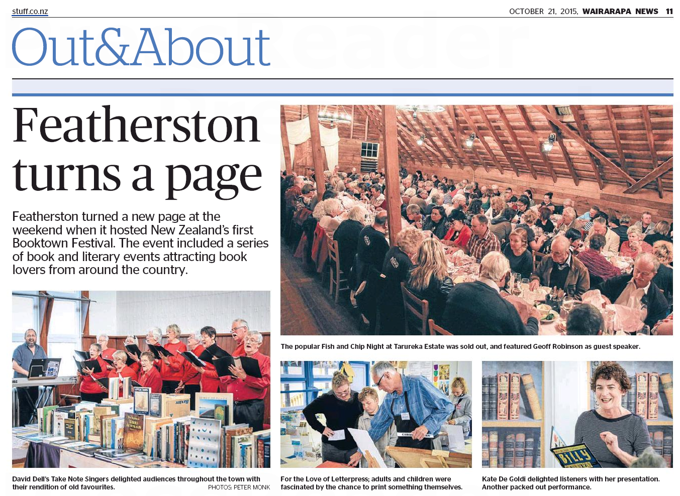 FEATHERSTON TO BECOME THE BOOKEND OF THE WAIRARAPA, 16-18 OCTOBER 2015